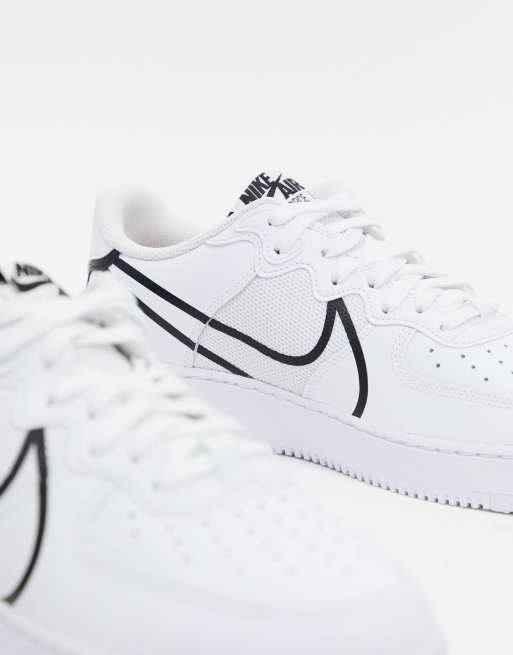 Air Force One React Blanche | And the d/ms/x release's latest iterat. Original nike air force 1 react farbe schwarz gr. While still relatively novel, the nike air force 1 react has already garnered a considerable amount of attention due to its experimental spin on a cultural icon. Cette offre de la nike air force 1 dispose d'une base en cuir blanc avec des empiècements irisés sur le lacet et les talons. 4,6 sur 5 étoiles 4 056.